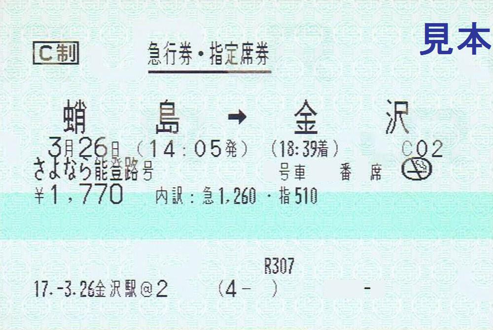 ※平成26年3月16日更新(急行券・指定席券JR西発行)