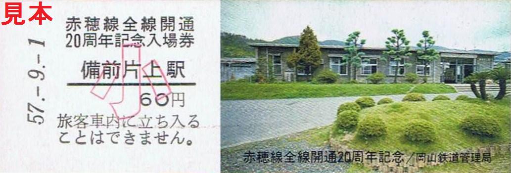 《赤穂線全線開通20周年記念入場券(昭和57年9月1日)》