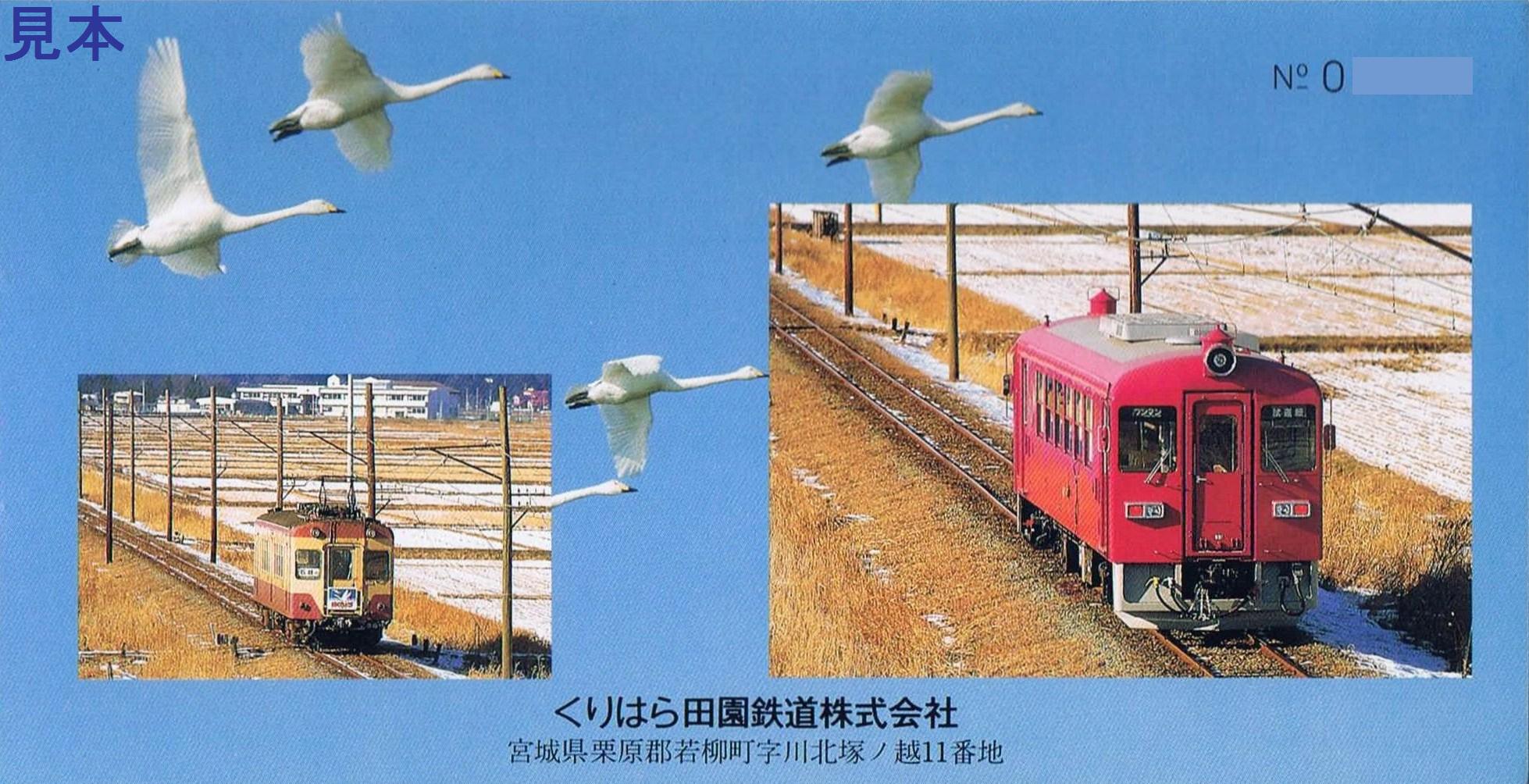 くりはら田園鉄道初日の入手です。裏面は『くりはら田園鉄道』の社名入り。発行駅は石越、若柳、沢辺、栗駒、細倉マインパーク前で、無人の細倉マインパーク前駅分は栗原電鉄時代同様、若柳で購入したのではないかと思います。当時は石越も有人駅でした。