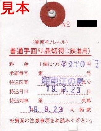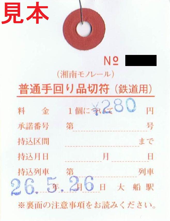 平成19年収集時の料金は270円で、写真左の印刷済手売り券は大船駅定期券発売窓口のみの取り扱い。湘南江の島駅にも普通手回り品切符がありますが、そちらはA型機械券にゴム印を押しただけのものでした。平成26年収集時は、消費税率改定に伴い料金が280円になっています。金額部分は補充式で変わっていませんが、券番の位置が下側に移っています。湘南江の島駅での取り扱いが無くなり、大船駅定期券発売窓口のみの取り扱いとなっていました。