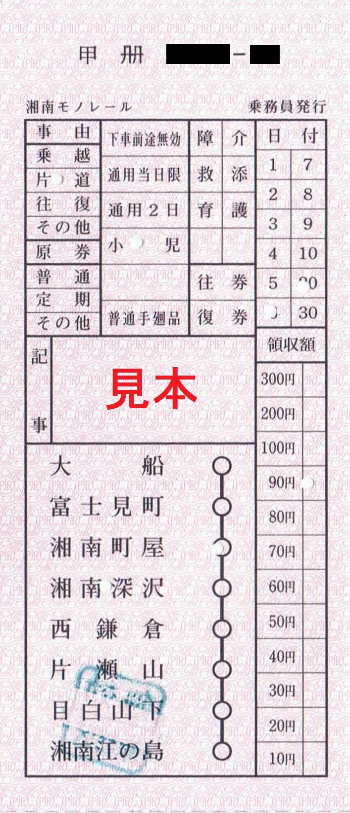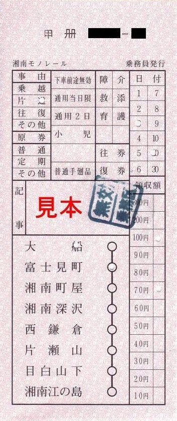 大人600円、小児300円で大船駅のみの発売。乗車券の日付以下は機械印字。(H26.5.29追記:各駅自動券売機で取り扱う様になったため、写真左の写真入り様式の券は発売終了となったそうです。なお、大船駅定期券発売窓口でも発売しているそうですが、自動券売機と同じ様なもの、との事。H26.5.26大船駅定期券発売窓口で確認)