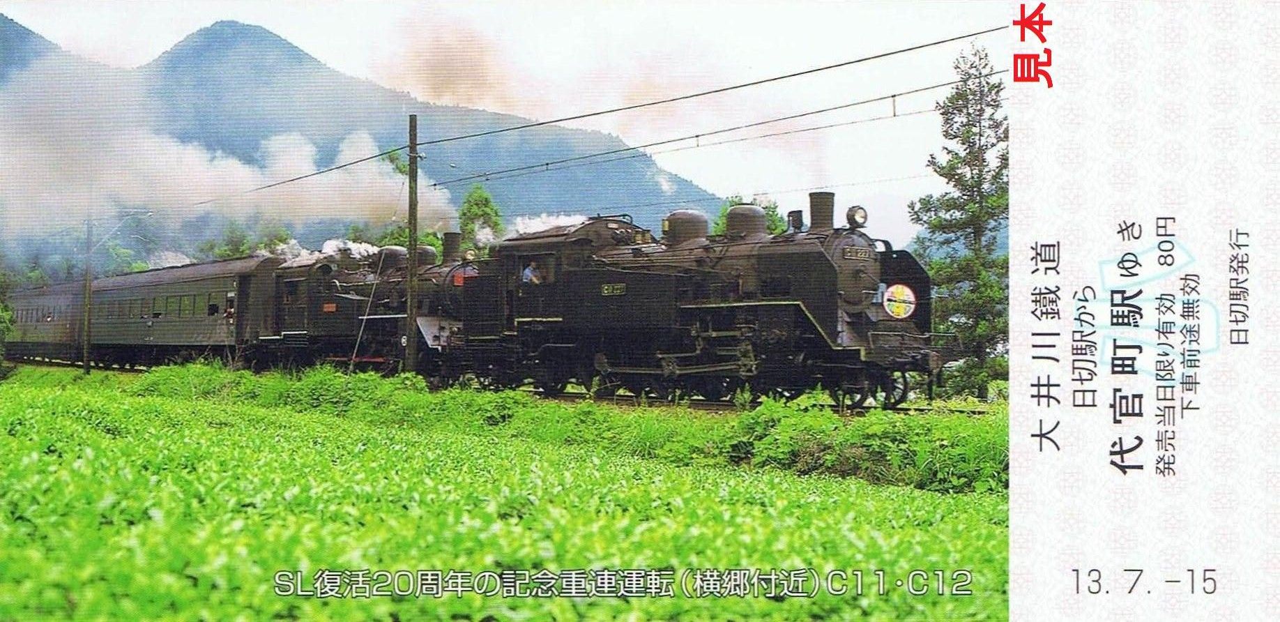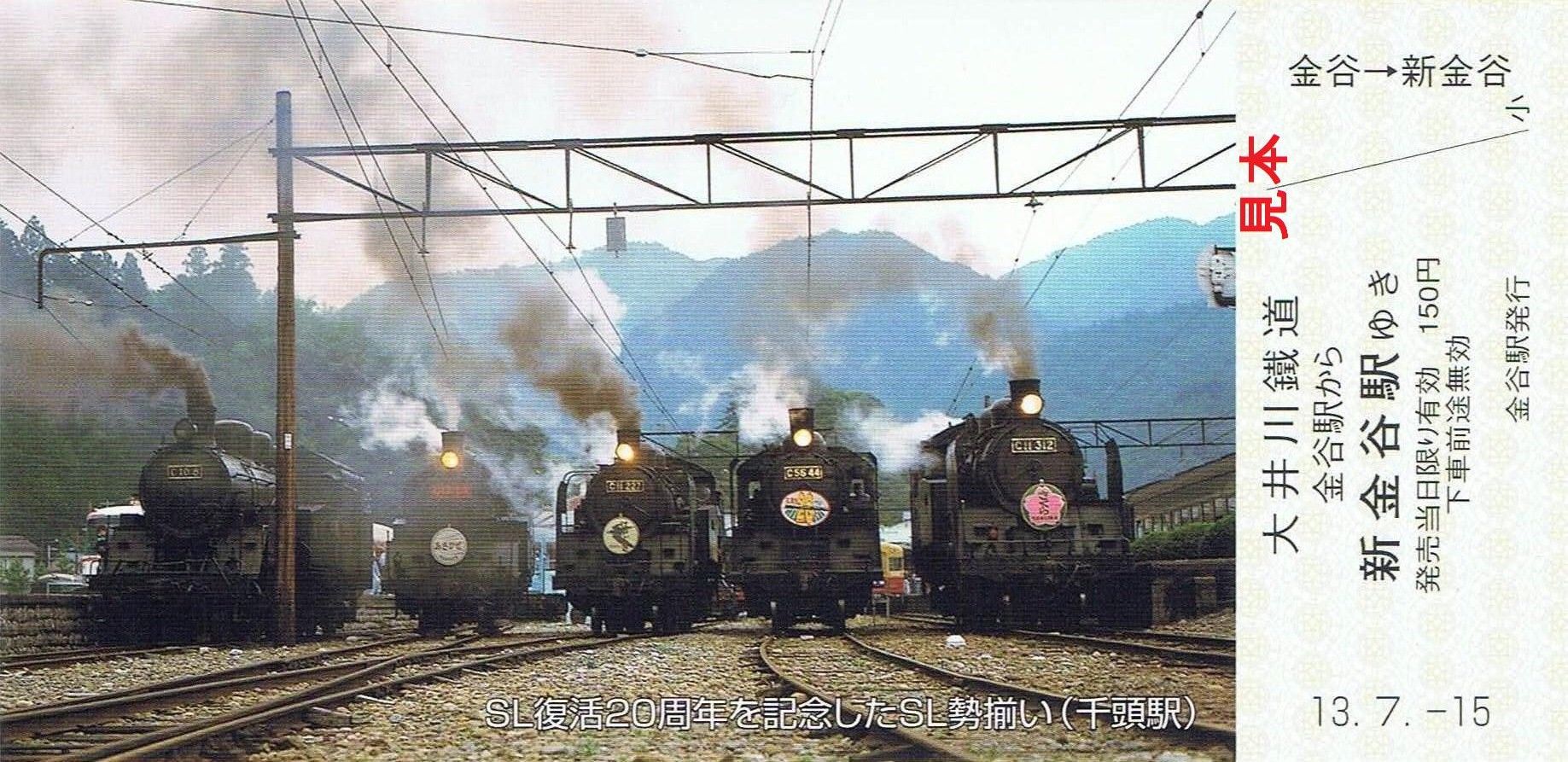 写真左の乗車券はSL復活20周年記念時の並びですが、さくら号以外にはやぶさ号とあさかぜ号のヘッドマーク装着が行われています。