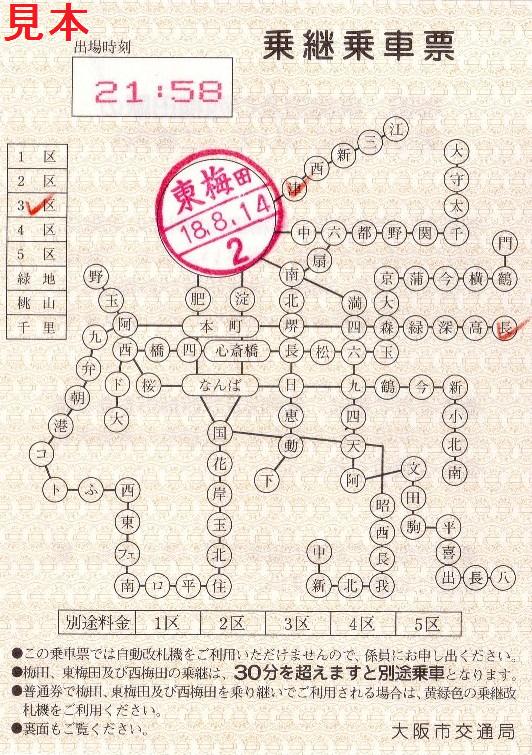 《乗継乗車票(東梅田駅・平成18年8月14日収集)》