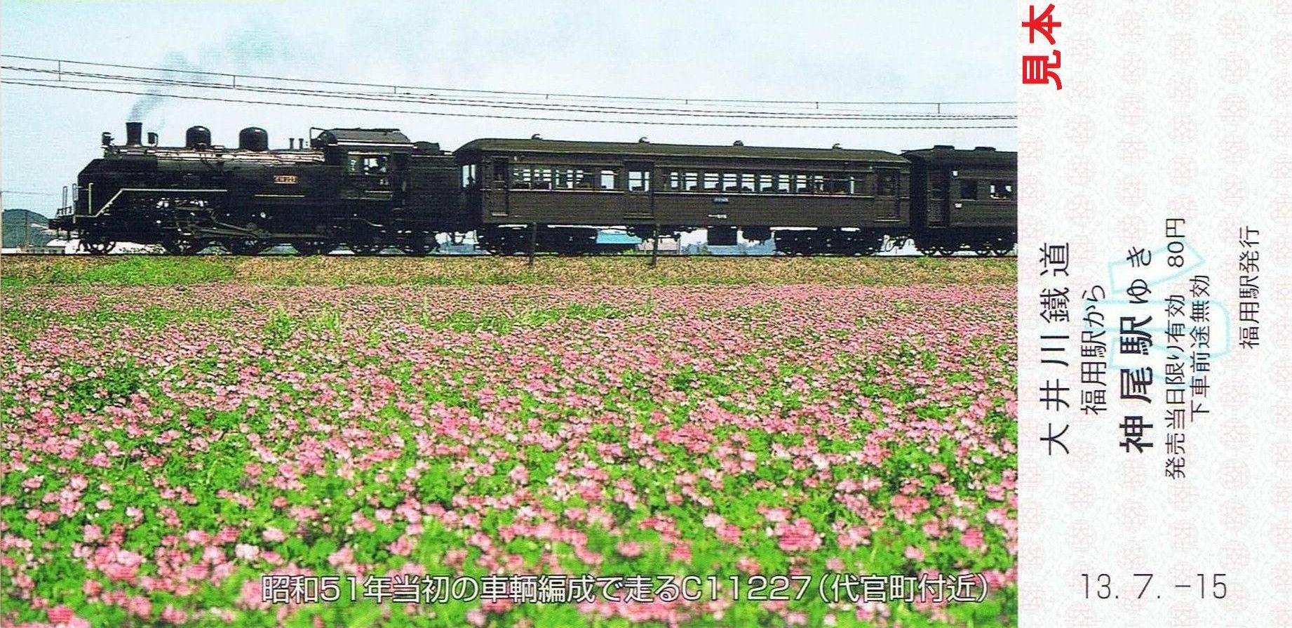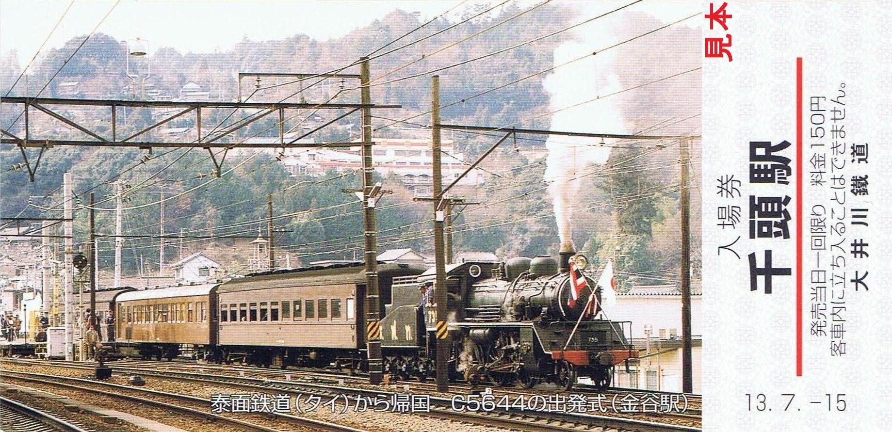 日比谷の鉄道フェスティバル(年度は失念)で封筒に入れられた状態で発売されていた5枚セットの記念切符。タイトルは不明ですがおそらく大井川本線全線開通70周年を記念したものではないかと思います。