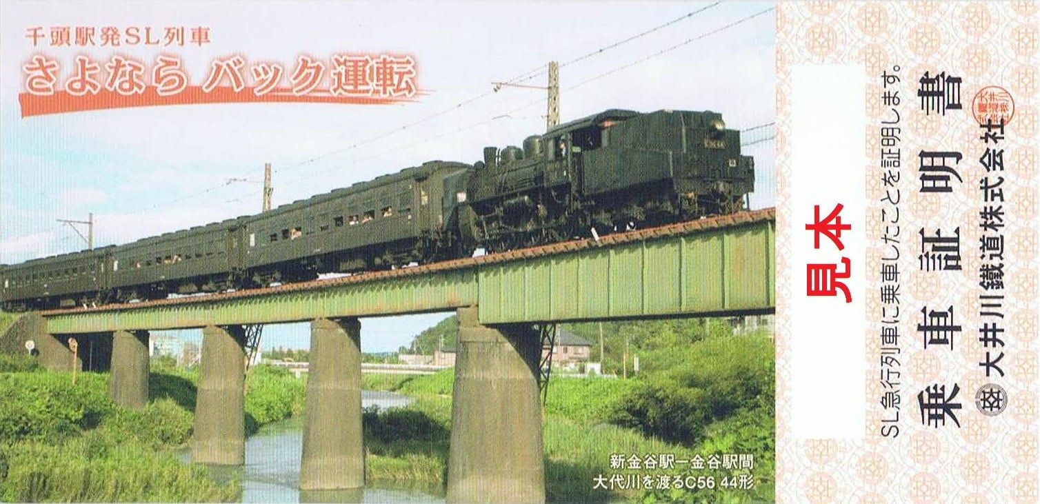 平成23年7月9日のSL列車に記念ヘッドマークを掲出して運行されました。写真はその乗車証明書です。