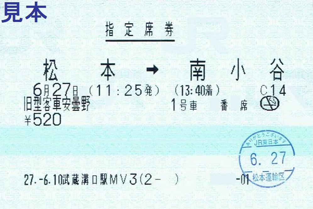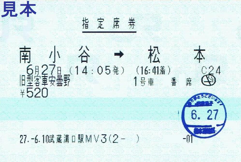 発売日に買いそびれて、それ以降はなかなか空きが出なかったのですが、購入日の夜に空きが出たタイミングで往復とも入手。同じ編成で翌日に運行された旧型客車かもしか号の指定席券よりも入手難易度が高かったです。なお、先述の通り、復路の乗車は止めたのですが、そちらにも記念に南小谷駅停車中に松本運輸区のスタンプを押していただきました。――――――――――――――――――――――――――――――――――――――
