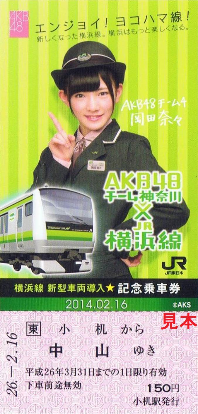 横浜線のE233系営業運転開始を記念して台紙(写真左)+記念乗車券6枚セットで10,000枚限定発売。1,000円。図柄はAKB48チーム神奈川と横浜線の車両。開業100周年では記念切符の発売が行われませんでしたが、今回はJR東日本が多くの記念商品を発売しました。南武線でも同様の記念商品発売を期待しています。