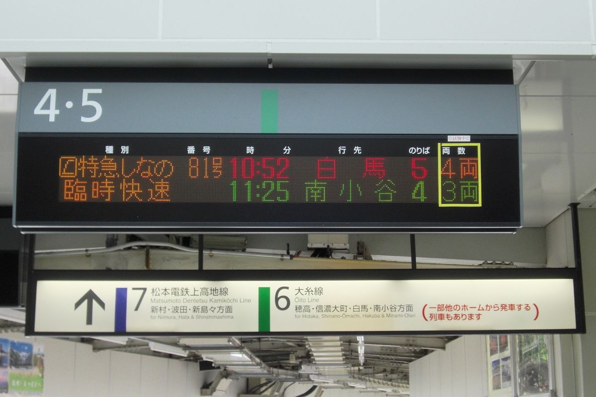 なお、当初はこの列車に往復とも乗車する予定でいましたが、松本駅から先で考えていた行程通りになるか読めないこと等の理由で、南小谷からはJR西日本の大糸線で糸魚川に向かいました。
