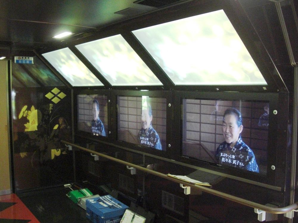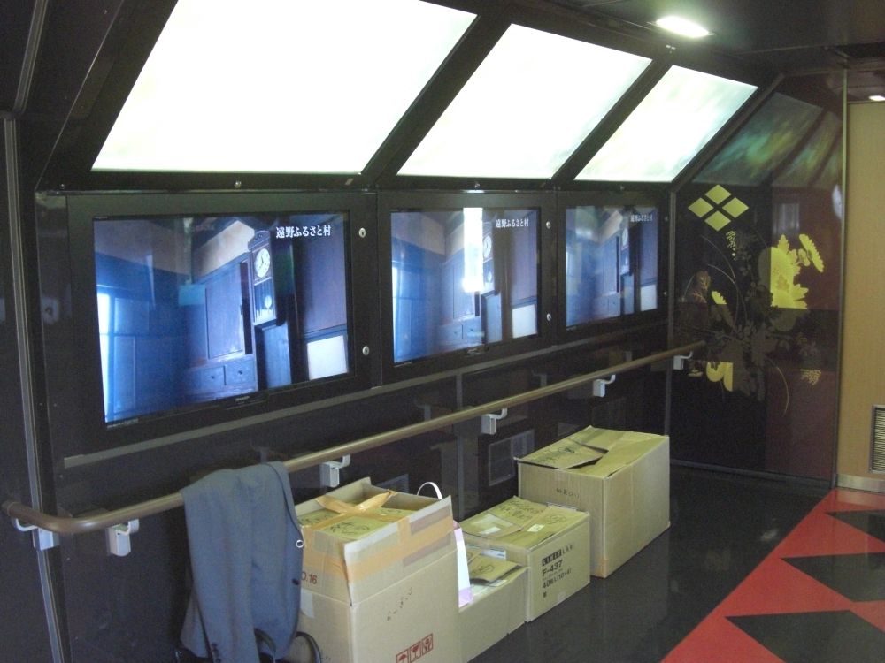車内に設置された観光案内用のモニタ。〔富野駅〕
