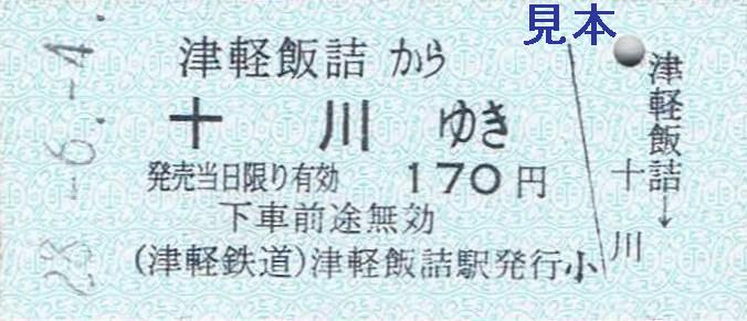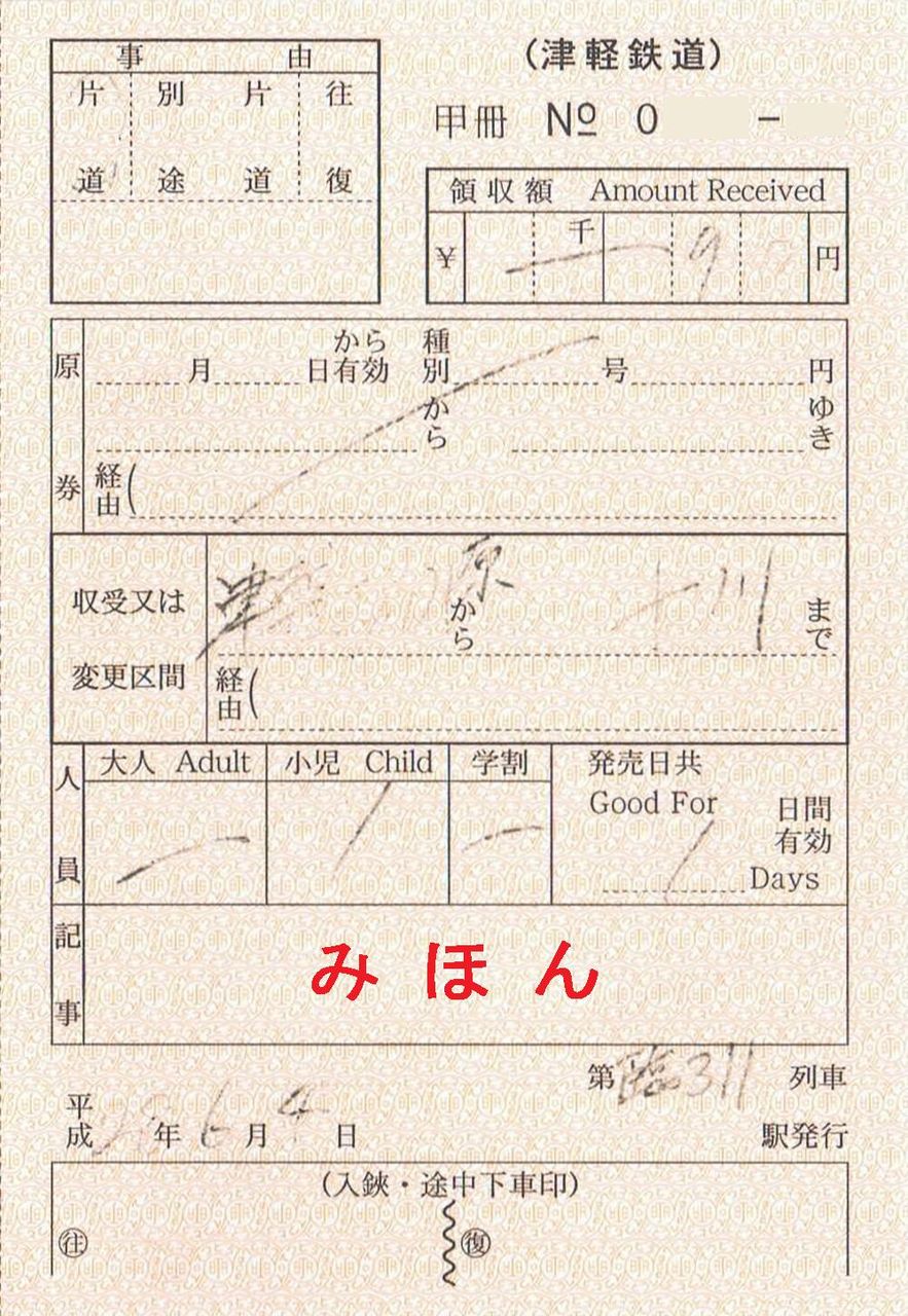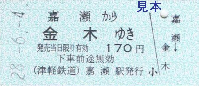 このイベントでは、津軽中里駅改札外において硬券乗車券類の即売会が行われました。無人駅である津軽飯詰駅、嘉瀬駅の硬券入場券・乗車券が販売されましたが、メインの商品は、平成29年3月(JRダイヤ改正または消費税率変更時)に廃止予定となっているJR東日本区間への連絡乗車券でした(定期券は継続)。今回は両駅の入場券と硬券乗車券(自社線内と連絡)の最安を収集しました。
