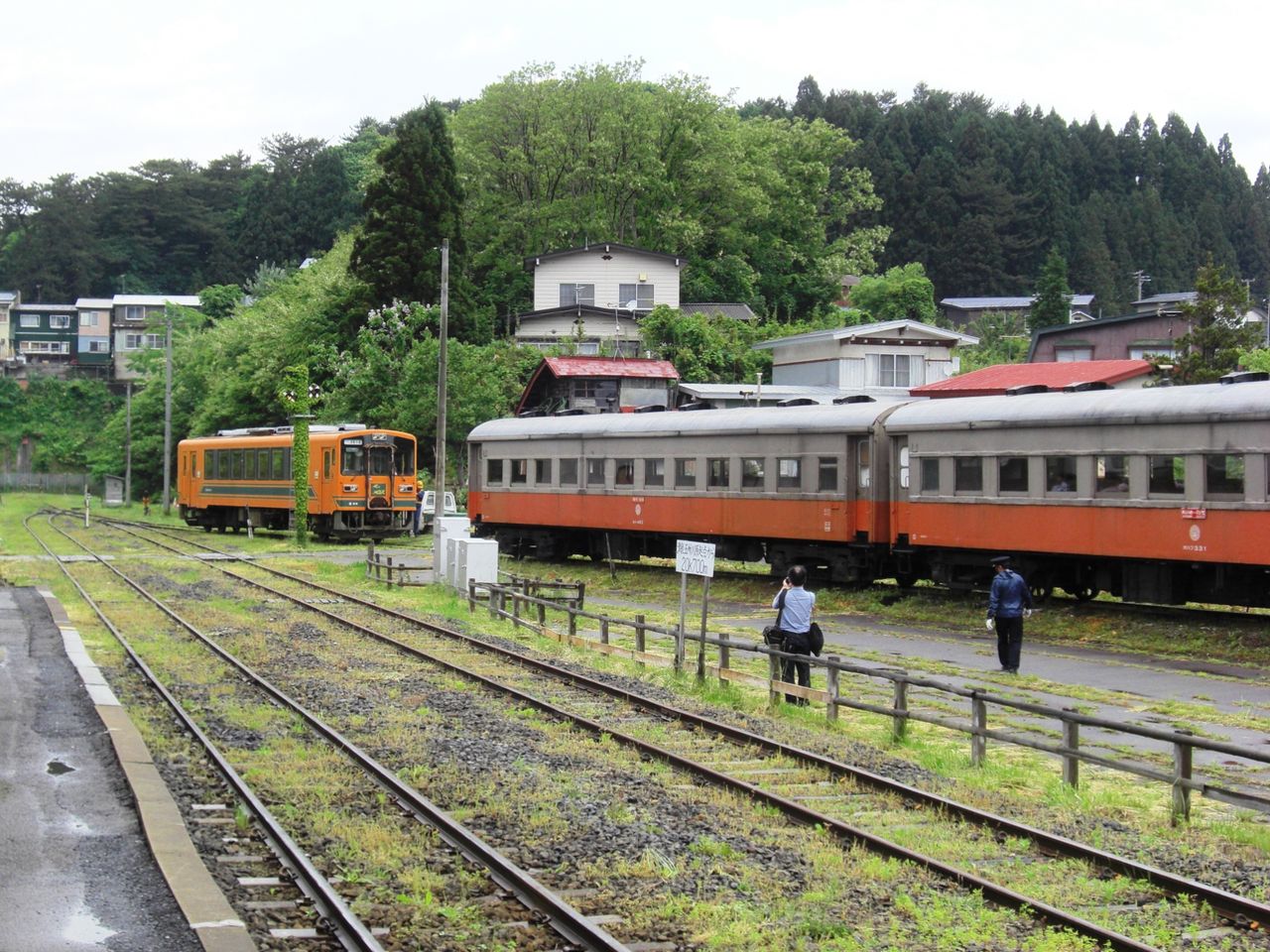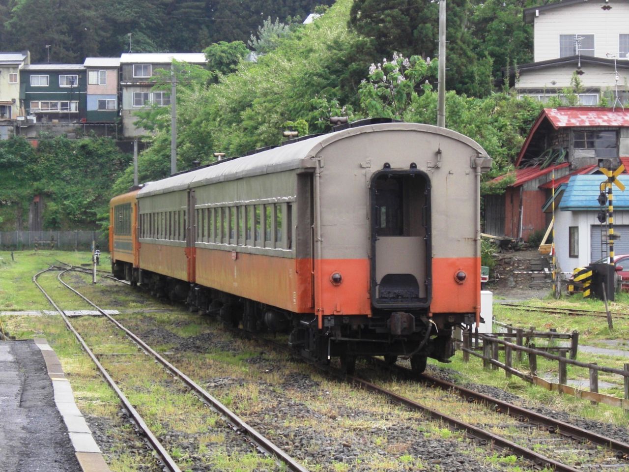《混合列車の使用車両(外観は津軽中里駅構内側線で撮影)》