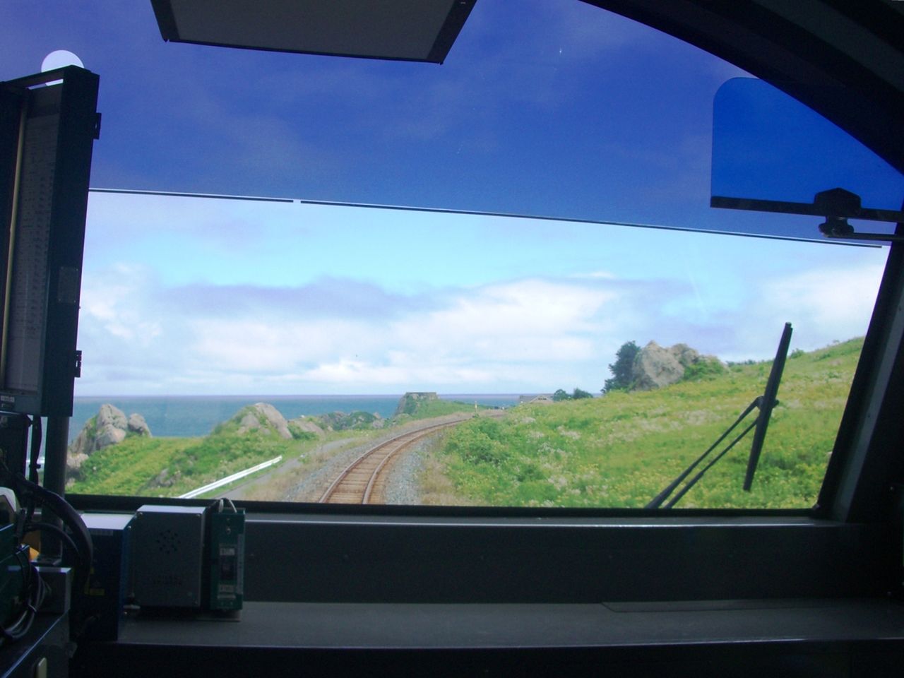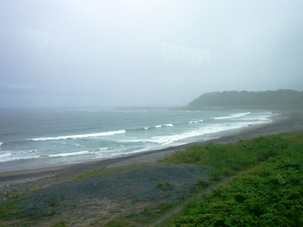 陸奥白浜付近。この列車、前面・側面窓からの眺望は良いです。