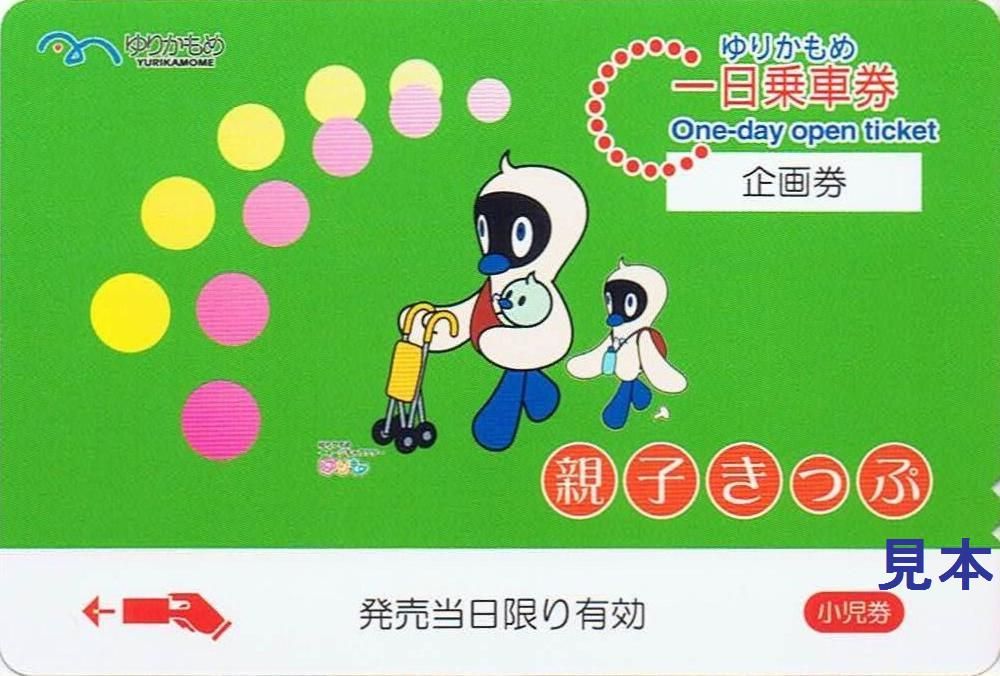 ここ数年の2〜4月上旬頃に、大人用一日乗車券購入者1名につき小児用の『親子きっぷ』(写真)を1枚200円で発売(小児2名分まで)していました。《一日乗車券(券売機券標準柄・ゆりも図柄)(2012年7月23日)》