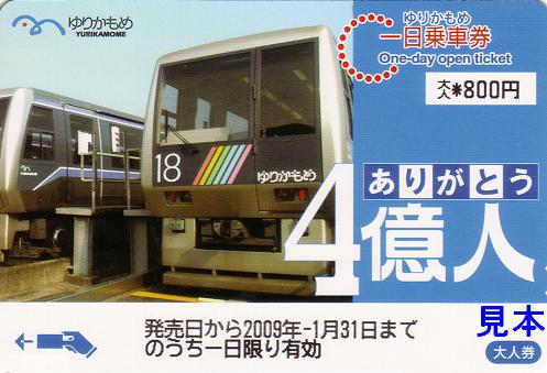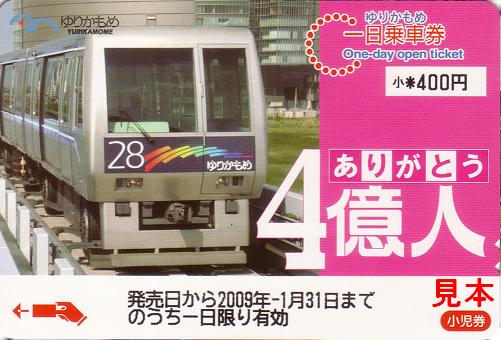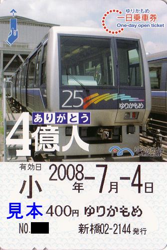 《ゆりかもめ乗車累計4億人突破記念一日乗車券(2008年7月1日発売開始)》