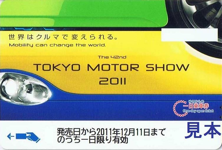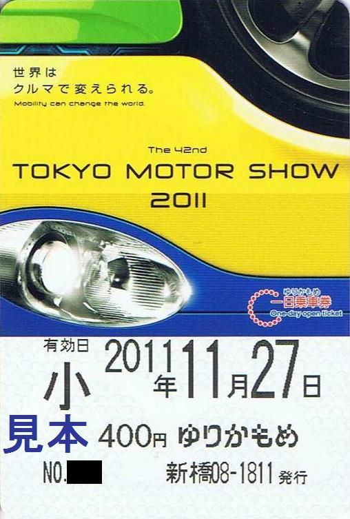 2011年12月3〜11日に東京ビッグサイト開催される第42回東京モーターショーを記念した一日乗車券が発売されました。単体で発売される当日券(券売機発券)と、東京モーターショー入場券とセット販売(商品名:ゆりかもめde 東京モーターショーGO!GO!セット)される手売りタイプの2種類があります。