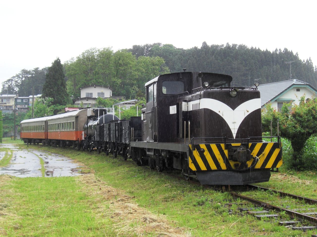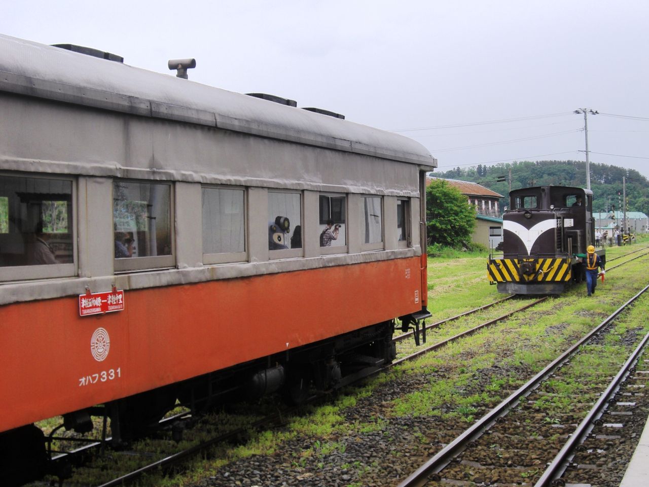 DD352は、津軽五所川原寄りから機回し線に入線。客車を連結し、再び津軽五所川原寄りに進む。ポイント切り替え後、1番線に客車を推進しながら入線。貨車と連結し組成完了。《混合列車の車内》