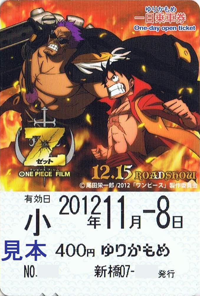 新橋駅 豊洲駅の自動販売機で5,000枚の限定発売。《『ONE PIECE』デザインゆりかもめ一日乗車券(2012年11月7日発売)》