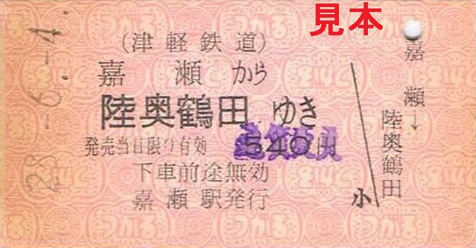 五能線陸奥鶴田駅までの連絡乗車券です。〔嘉瀬駅〕