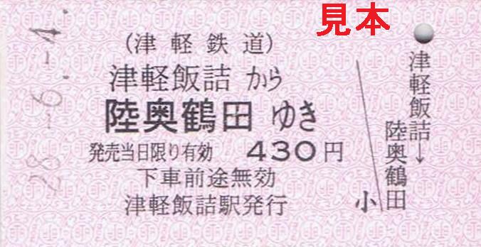 五能線陸奥鶴田駅までの連絡乗車券です。運賃変更印が押されていますが、貴重なつがる地紋の乗車券です。