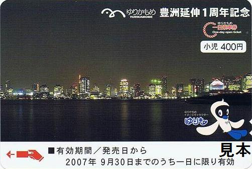 新橋駅、汐留駅、お台場海浜公園駅、台場駅、国際展示場正門駅、豊洲駅の自動販売機で20,000枚の限定発売。※2005年12月19日掲載(開業10周年記念、2006.1一日前売標準小)