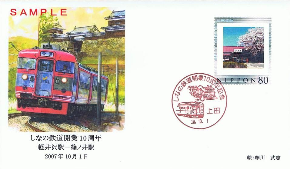 《しなの鉄道開業10周年記念カバー(平成19年10月1日)》