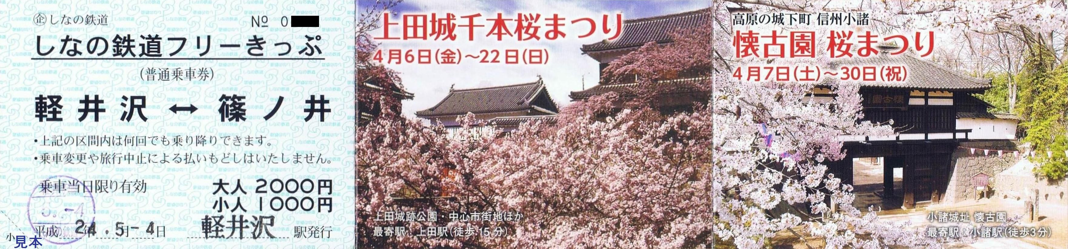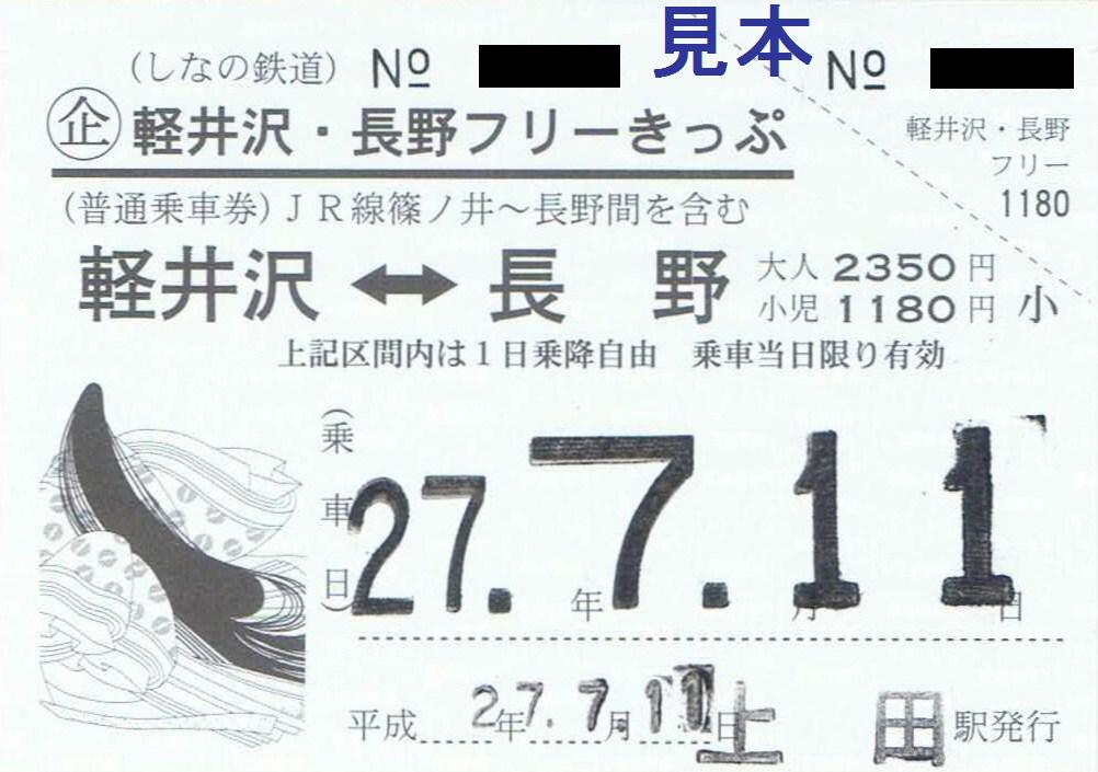 平成27年3月14日に発売開始されたフリーきっぷで、しなの鉄道線とJR東日本信越本線篠ノ井〜長野間が有効。大人2,350円・小児1,180円で、小児用は断線を切って発売。