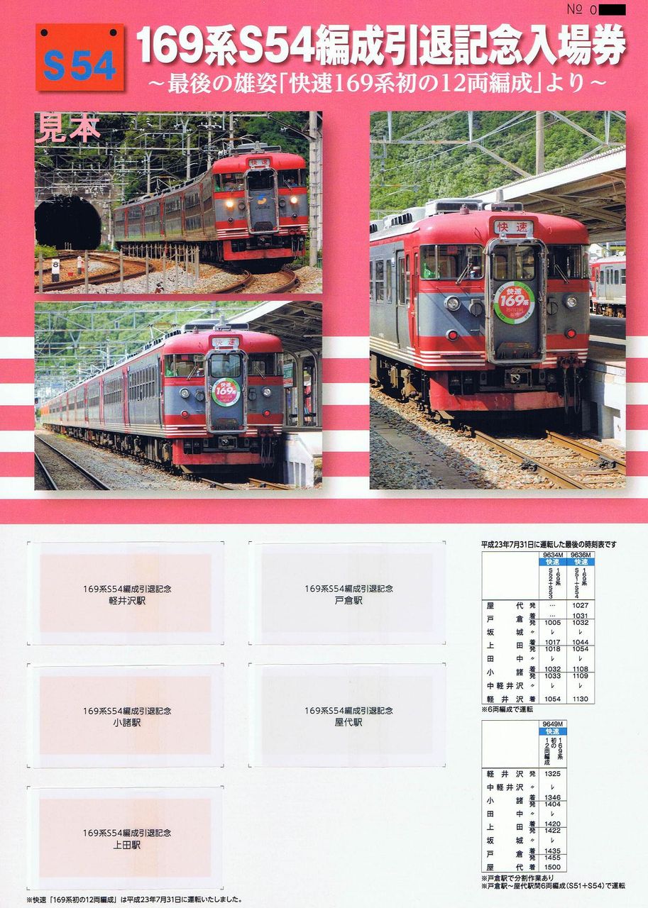 《169系S54編成引退記念入場券(平成24年1月21日発売)》