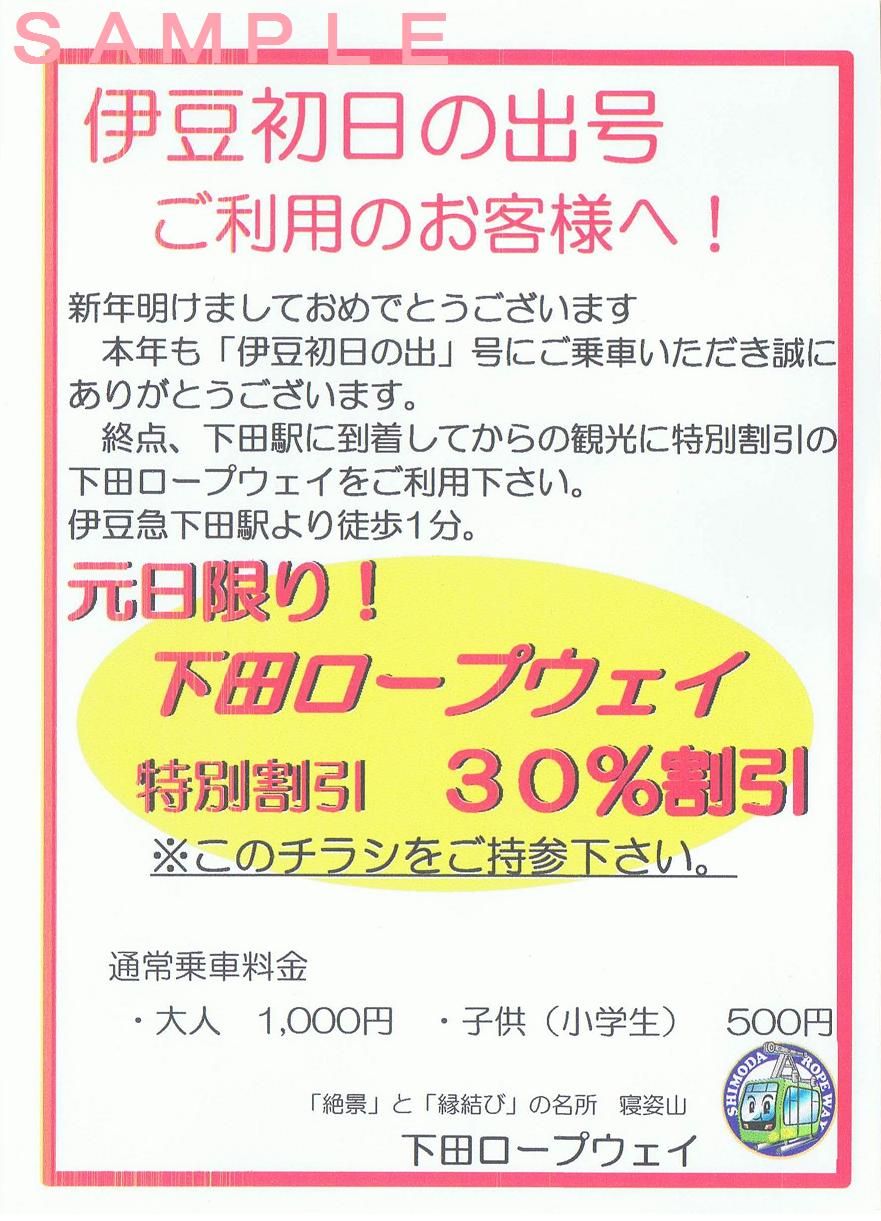 《下田ロープウェイ 伊豆初日の出号ご利用のお客様へ!