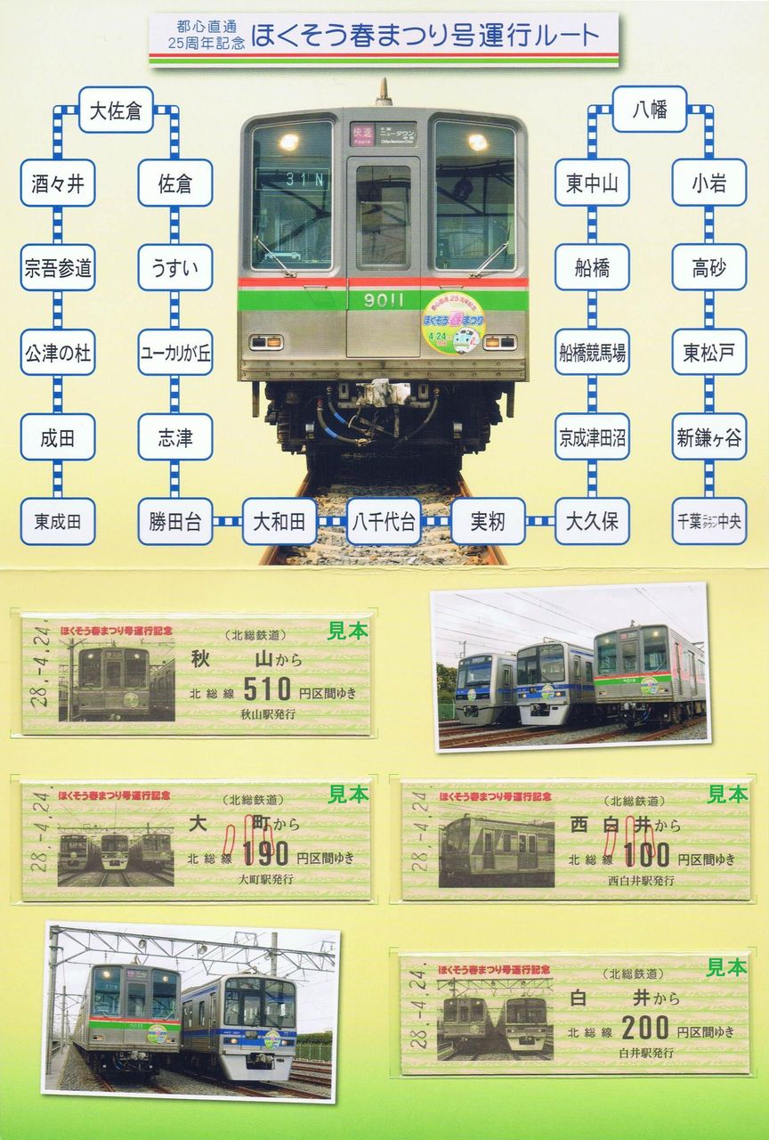 2016年の『ほくそう春まつり号』は、9000形を使用して京成電鉄東成田発の快速列車として運行されました。