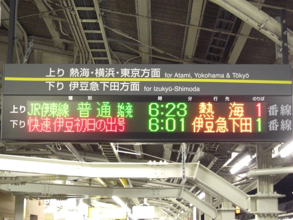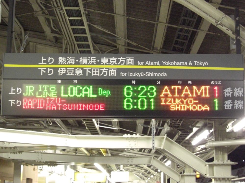 伊東駅ホーム上の案内表示。