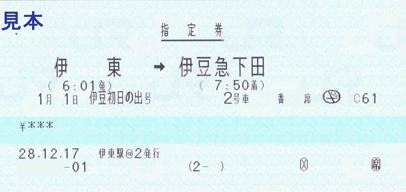 《伊豆初日の出号指定席券・指定券(伊東駅・平成28年12月17日収集)》