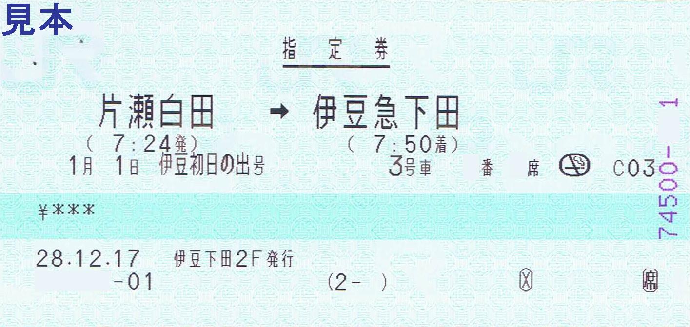 《伊豆初日の出号指定席券・指定券(伊豆急下田駅・平成28年12月17日収集)》