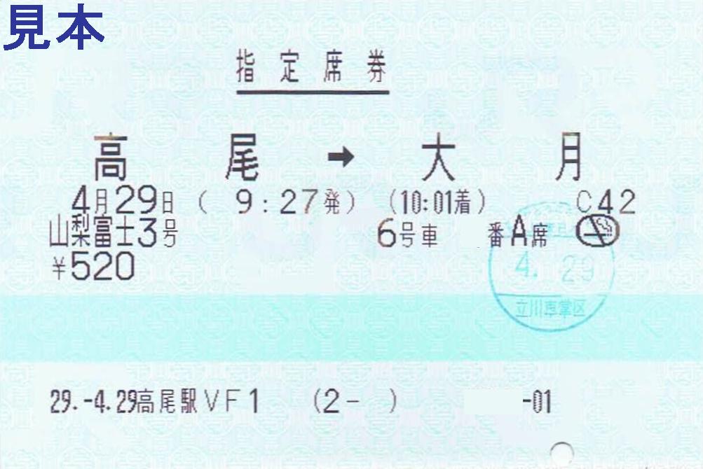 《山梨富士3号 指定席券(平成29年4月29日乗車分)》