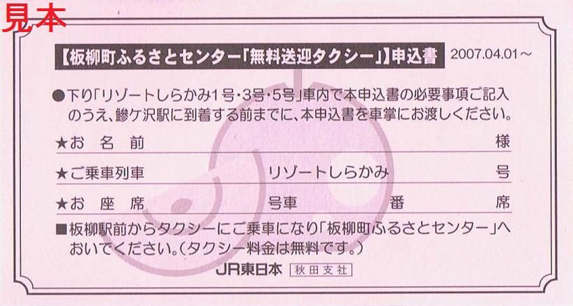前回収集分にくまげら編成が加わっています。〔【板柳町ふるさとセンター「無料送迎タクシー」】申込書(2007.04.01〜)〕