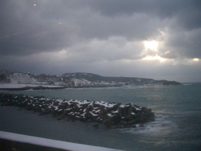 五所川原から秋田までリゾートしらかみブナ編成に乗車。写真は深浦駅到着直前の車窓。