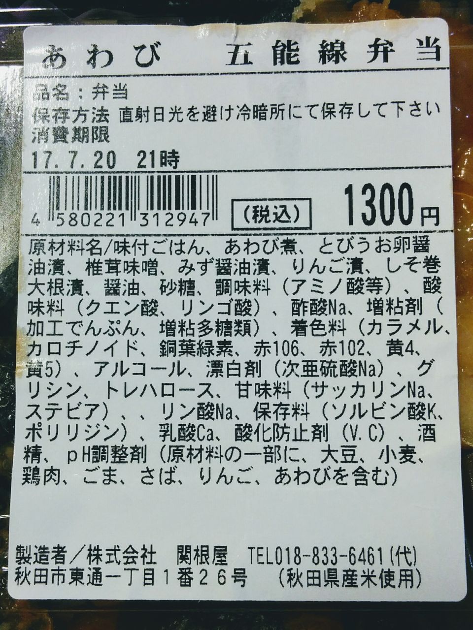 《秋田駅弁 関根屋 白神そだち あわび五能線弁当(2017年7月19日購入)》