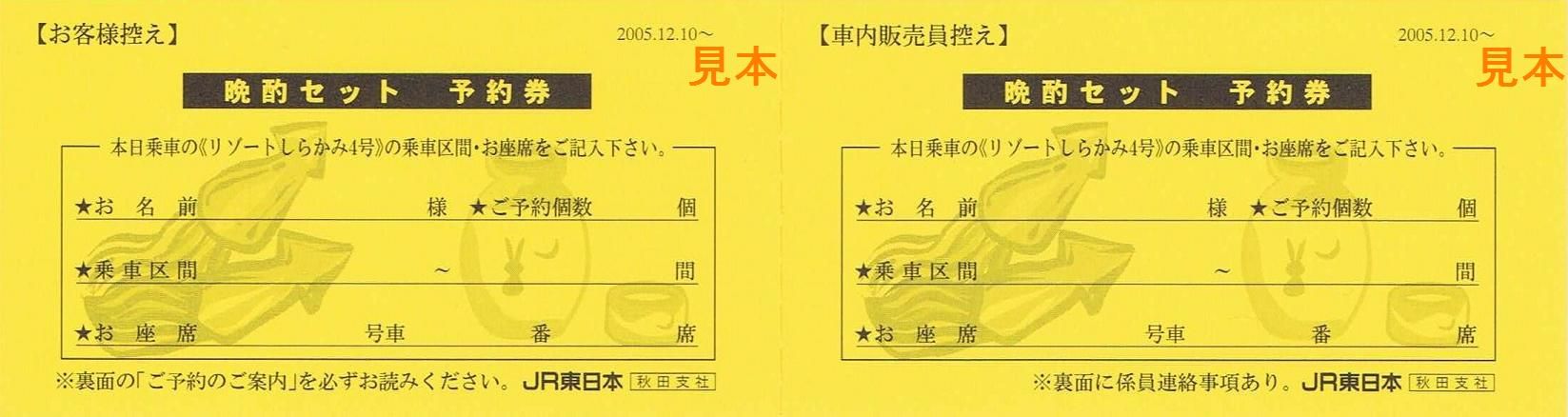 〔【リゾートしらかみ「乗車証明書」】(2005.12.03〜)〕