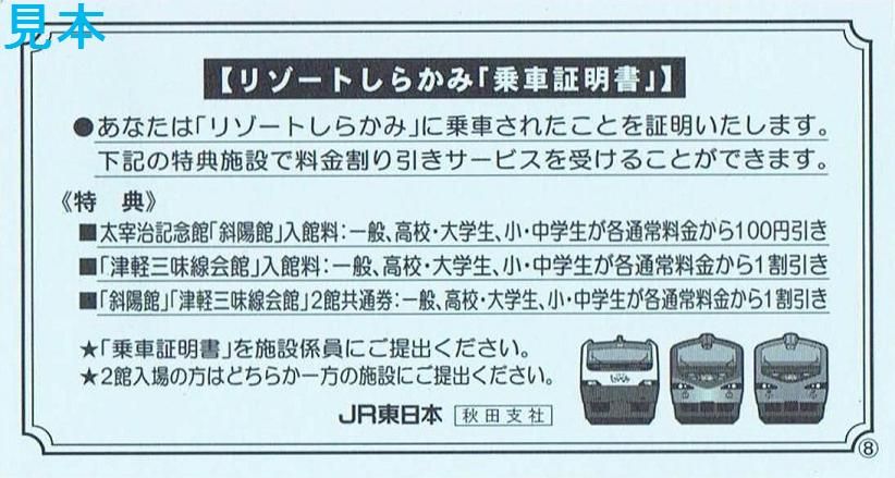 〔【リゾートしらかみ「乗車証明書」】〕