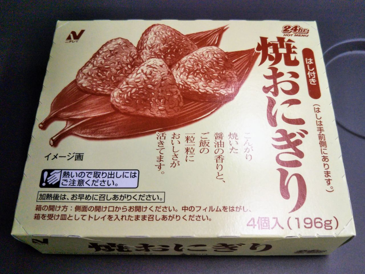 試しに焼おにぎり(税込370円)を購入してみました。コンビニの焼おにぎりより小さめではあるものの、4つも入っています。あと100円くらい高くても良いから、E657系デザインのパッケージとかに出来ないものかと思います(スペーシアのニチレイ商品についても同様に思う)。