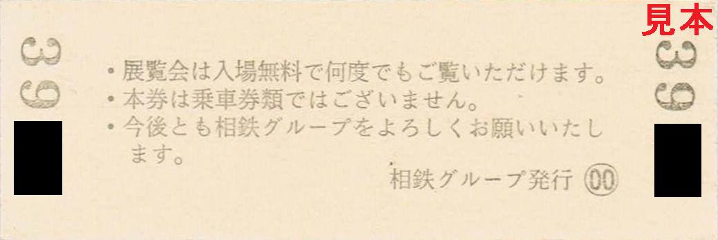 同展の来場者、各日3,000名にD型の『切符風記念硬券』が配布されましたが、前半は神中鉄道時代の蒸気機関車+客車、後半は20000系デザインのものが配布されました。写真は20000系デザインの切符風記念硬券(写真左は表面、右は裏面)。
