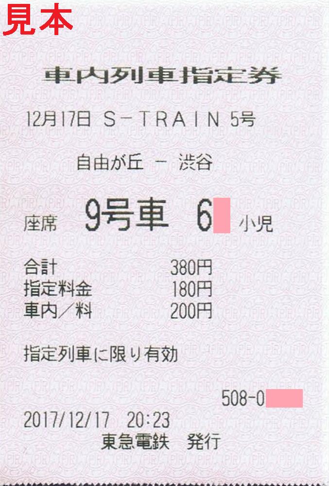 《東急電鉄発行 車内列車指定券(2017年12月17日発行)》