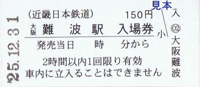 平成25年収集分と異なり、『日本橋』の文字が寄っており、『駅』との間が開いています。〔近鉄難波駅〕