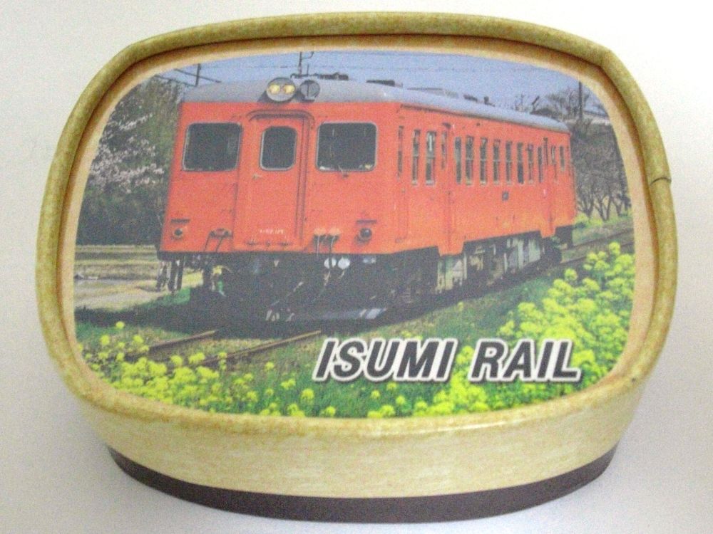 箱のフタがキハ52首都圏色デザインの新商品。税込540円。フタを外すとシール(写真)になっています。