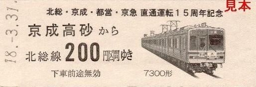 《北総・京成・都営・京急 直通運転15周年記念乗車券(北総鉄道分・平成18年)》