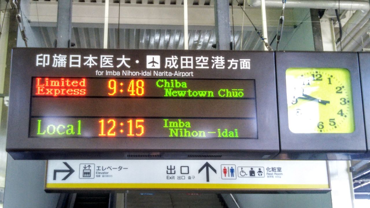 ホーム上の案内表示。〔千葉ニュータウン中央駅〕