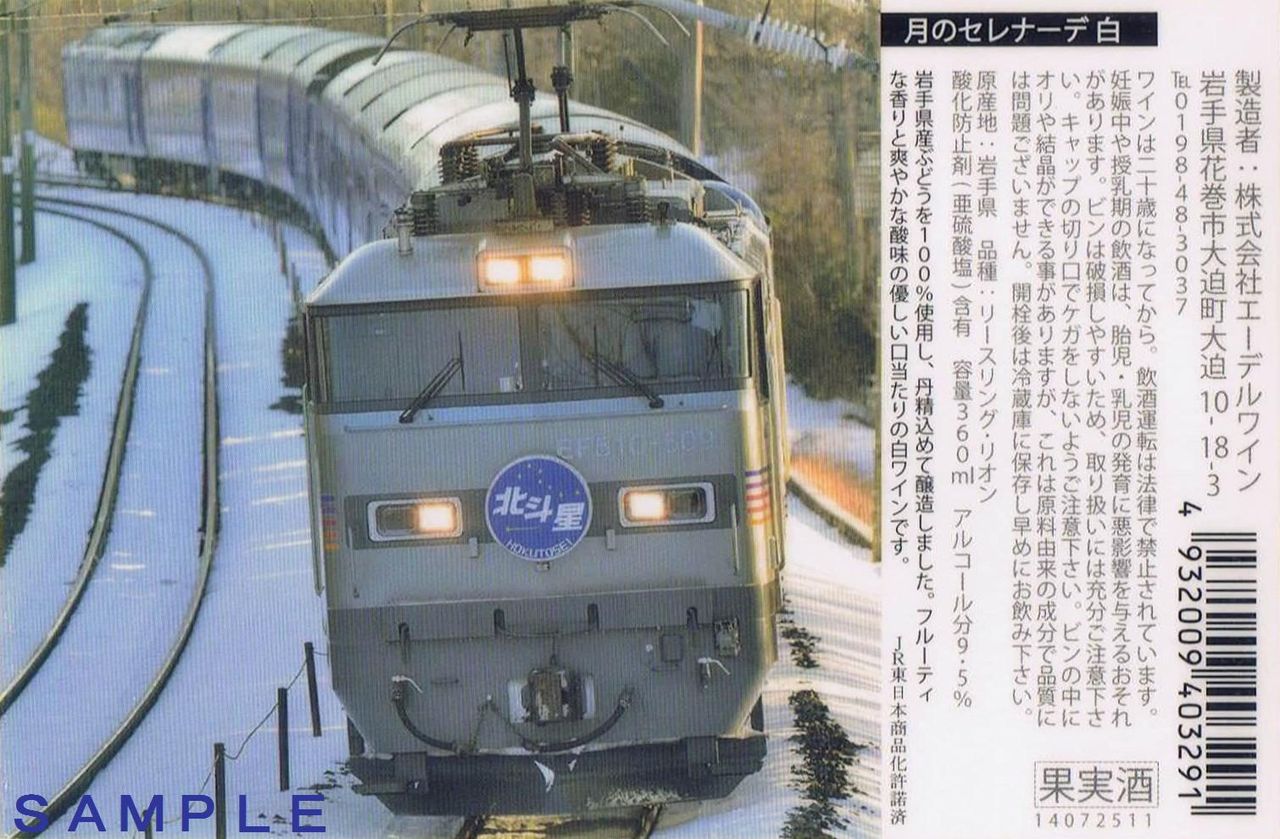 ¡¡Ê¿À®25ǯ8·î7¡Á12Æü¤ËÀéÍÕ»°±Û1³¬¤Ç³«ºÅ¤µ¤ì¤Æ¤¤¤¿¡ØÀéÍÕ¸©¥í¡¼¥«¥ëÅ´Æ»¥Õ¥§¥¢¡Ù²ñ¾ì¤ÇÈÎÇ䤵¤ì¤Æ¤¤¤¿¤â¤Î¡£ËÌÅÍÀ±¥é¥Ù¥ë¤Î¥ï¥¤¥ó360ml¤ÇÀÖŽ¥Çò¤½¤ì¤¾¤ì980±ß¤Ç¤·¤¿¡£À½Â¤¸µ¤ÏË̳¤Æ»¥ï¥¤¥ó³ô¼°²ñ¼Ò¡£Àè½Ò¤Î¥«¥ì¡¼&¥Ï¥ä¥·¡¢¥³¡¼¥ó¥¹¡¼¥×¤ÈƱ¤¸¤¯¡ØJRÅìÆüËܾ¦Éʲ½µöÂúºÑ¡Ù¡£¥é¥Ù¥ë¤Î¥Ç¥¶¥¤¥ó¤ÏEF81·ÁÅŵ¤µ¡´Ø¼Ö¡£Ê¿À®25ǯ12·î22Æü¤ÎËÌÅÍÀ±¹æ(»¥ËÚ¹Ô)¼ÖÆâÈÎÇäÉÊ¤âÆ±¤¸¤â¤Î¡£¡¡¼Ì¿¿¤ÏÀ֥磻¥ó¤Î¥é¥Ù¥ë¡£