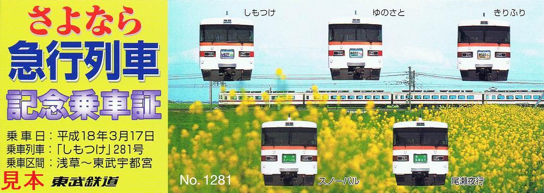 ¡¡Ê¿À®18ǯ3·î17Æü¤Î¥À¥¤¥ä²þÀµÁ°Æü¤ò¤â¤Ã¤ÆÅìÉðÅ´Æ»¤ÎÍÎÁµÞ¹ÔÎó¼Ö¤Î±¿¹Ô¤¬½ªÎ»¤·¤Þ¤·¤¿(ÍâÆü¤«¤éÆÃµÞ²½)¡£ÍÎÁµÞ¹ÔÎó¼ÖºÇ½ªÆü¤Ëȯ¹Ô¤µ¤ì¤¿µÇ°¾è¼Ö¾Ú¤Ç¡¢¤·¤â¤Ä¤±¹æ°Ê³°¤Ë¤æ¤Î¤µ¤È¹æ¡¢¤¤ê¤Õ¤ê¹æ¡¢¥¹¥Î¡¼¥Ñ¥ë¡¢ÈøÀ¥Ìë¹Ô¤Î¼Ì¿¿¤â»ÈÍÑ¡£³Æ¥Ø¥Ã¥É¥Þ¡¼¥¯¾åÉô¤Ë¡ØµÞ¹Ô¡Ù¤Î¼ïÊ̤¬µºÜ¤µ¤ì¤Æ¤¤¤Þ¤·¤¿¡£