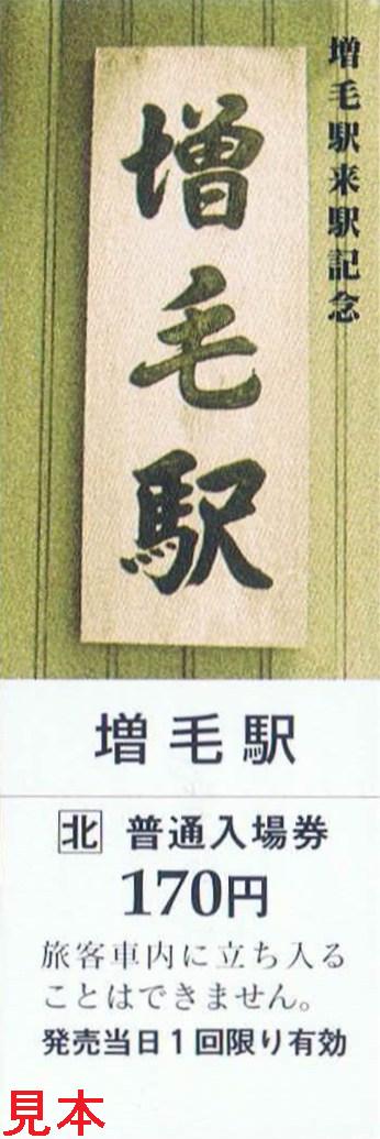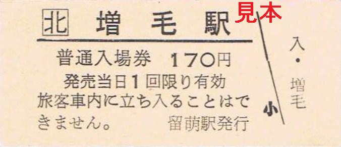 縦型のD型硬券入場券。先述の増毛駅普通入場券と同様に増毛駅周辺の『増毛町駅前観光案内所』『国稀酒造』にて販売されていました。