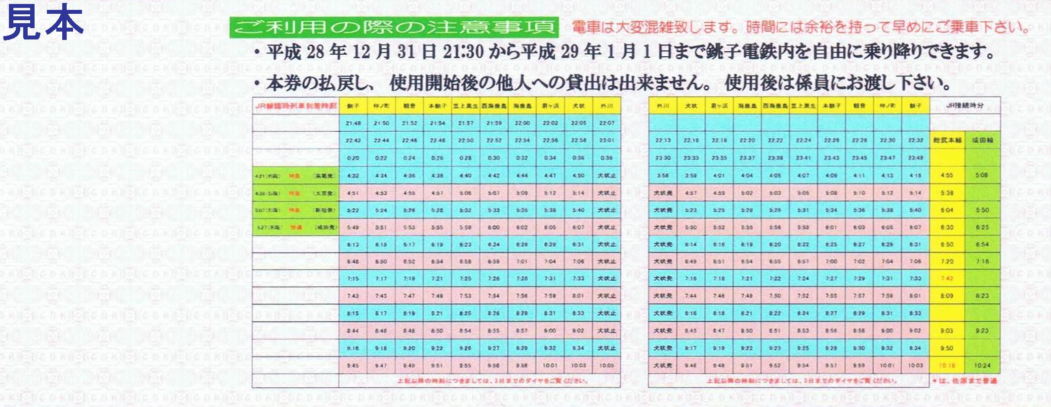 【銚子電気鉄道発行の犬吠初日の出号運行時の記念券】