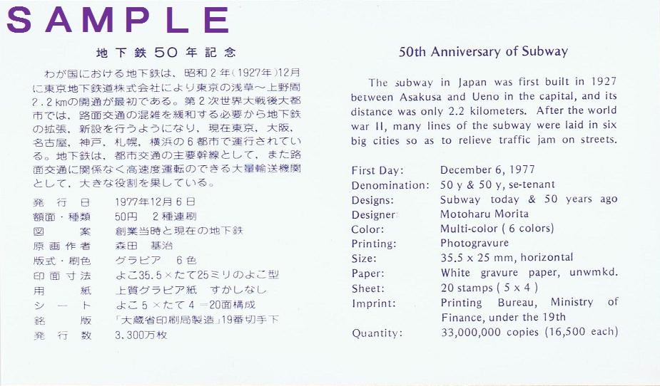 《地下鉄50周年記念初日カバー(昭和52年12月6日)》